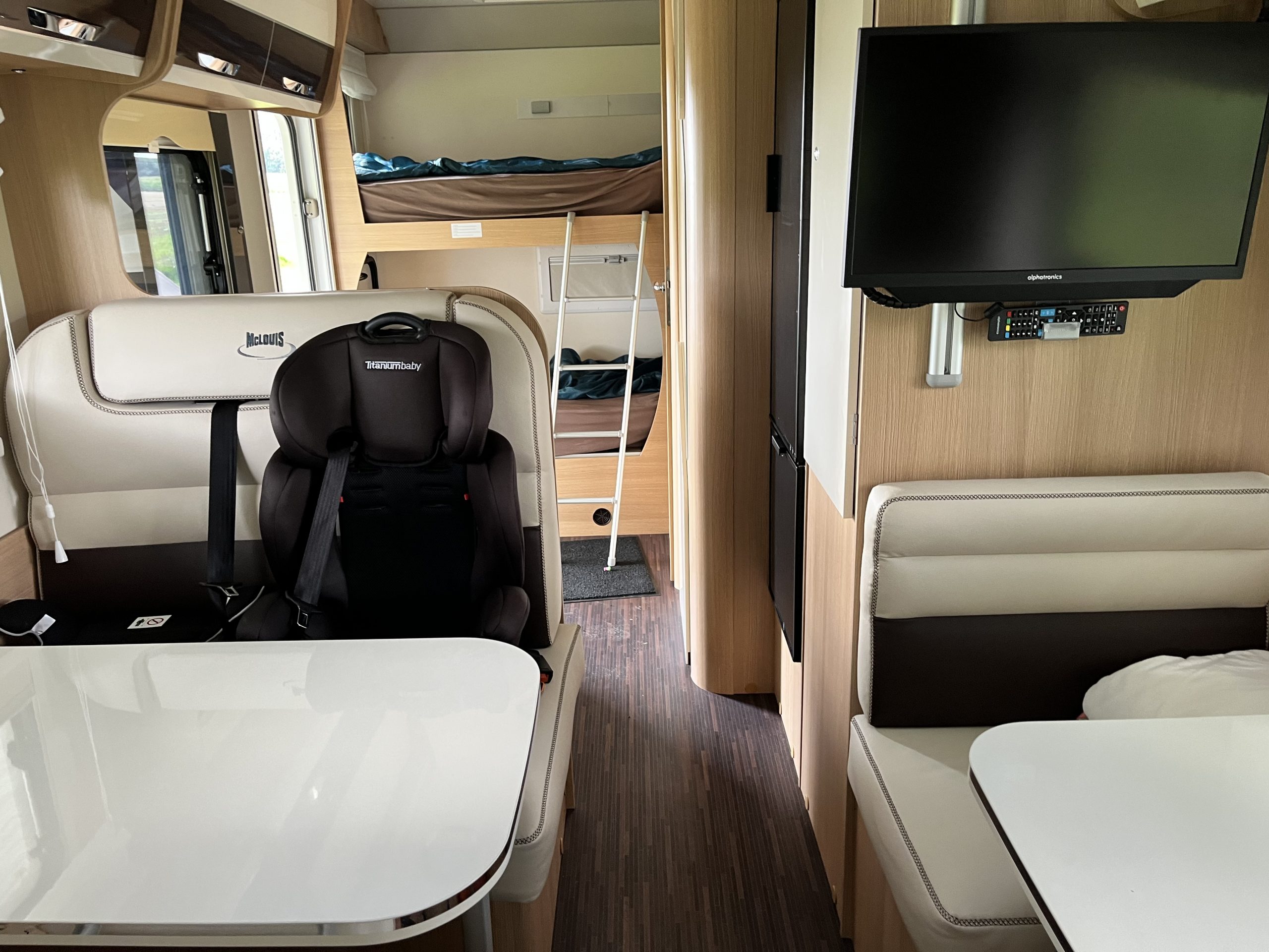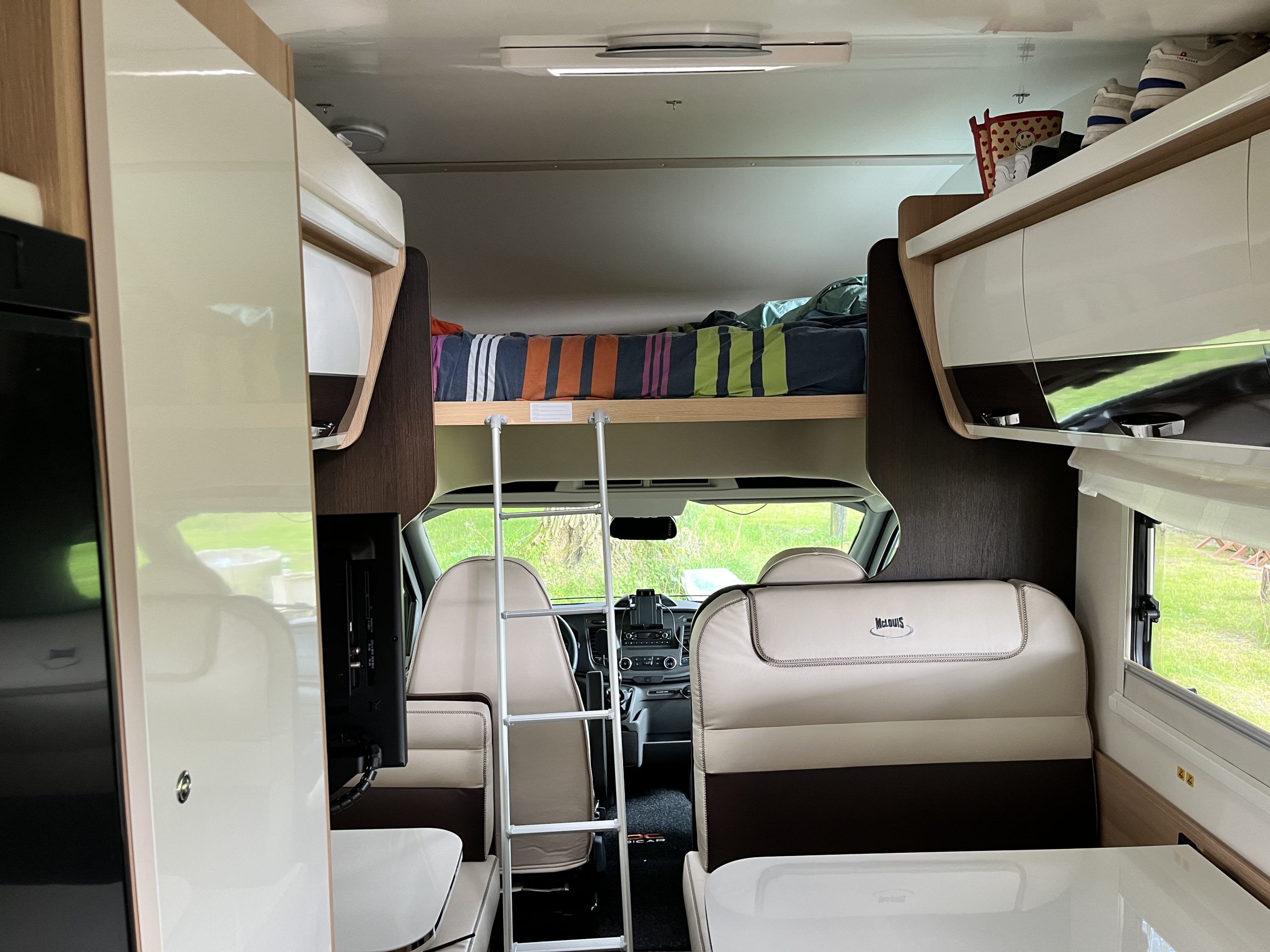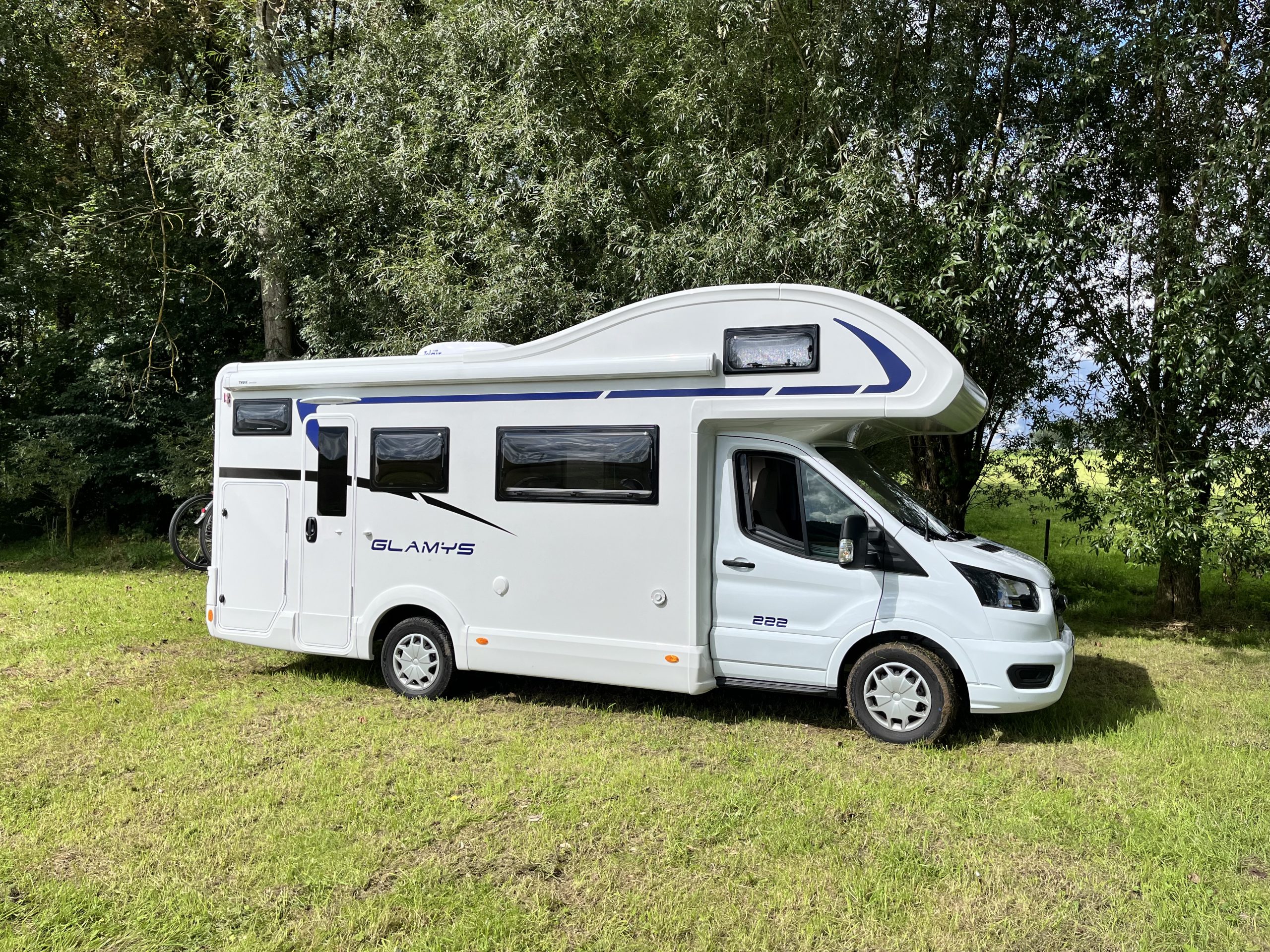 De McLouis Glamys A222 (of 22) is een ruime, Italiaanse alkoof-camper, ideaal voor gezinnen door de aanwezigheid van een alkoofbed, stapelbedden en een dubbele zithoek, goed voor 4-7 personen, en staat bekend om zijn royale indeling, gebouwd op een Ford chassis met functies zoals airco en cruise control. De door ons verhuurde versie heeft een luifel, fietsendrager, airco 220v , smartTV  en zonnepaneel als voornaamste opties.